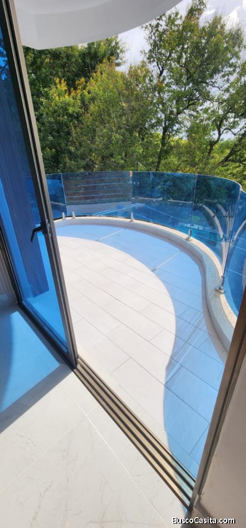 Moderno y amplio apartamento ubicado en el 3er nivel de torre residencial. Cuenta con 132 m² de construcción y 171 m² de terreno. Dispone de 3 habitaciones, cada una con su baño; la principal con vestidor. Incluye baño de visitas, sala y comedor integrados, cocina abierta tipo isla equipada con estufa, horno y extractor, área de lavandería, 2 balcones y 2 parqueos techados.