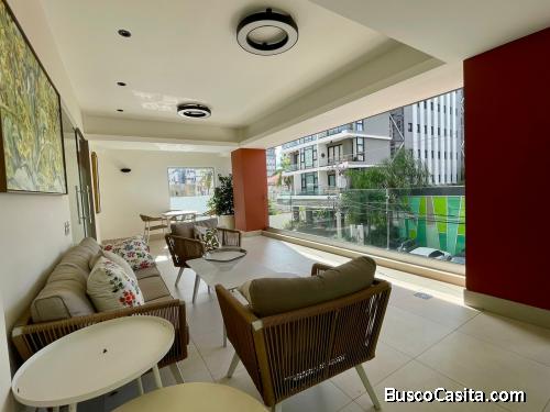 El Apartamento está ubicado en la TORRE SHALOM ROYAL VIII de calle prolongación Fantino Falco #5, Ensanche Piantini, Distrito Nacional.