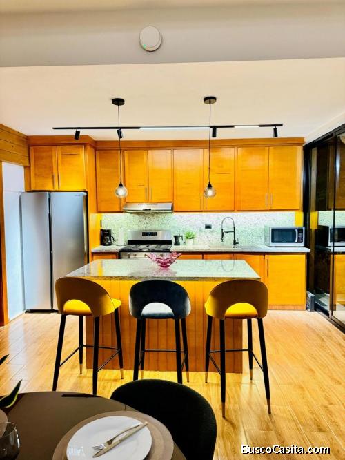 1 habitación principal con baño, walk-in closet, ac y balcón con vista a las montañas